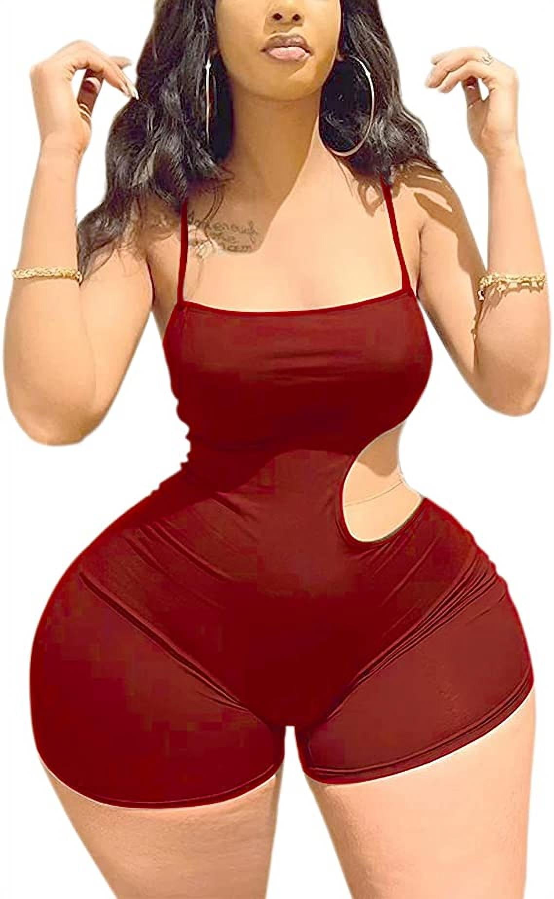 Women Solid Ribbed Hollow Out Jumpsuits Waist Cut Out Sleeveless Spaghetti Strap Biker Shorts Rompers Summer Playsuit Walmart Com